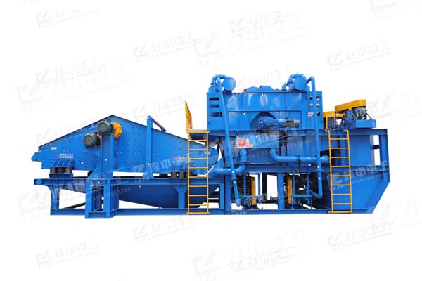 物料先經過擦洗機進行擦洗,除去砂顆粒表面附著的泥粉;擦洗后的物料進入輪洗洗砂機進行二次清洗、控水,達到泥沙分離效果,將清洗后的粗、細砂進入脫水篩進行脫水。